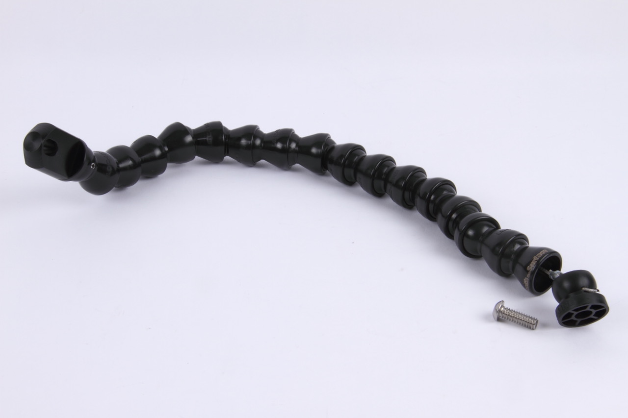 A built-in safety cable that runs through the entire arm ensures that you will never lose your valuable lighting equipment even if you accidentally disconnect the arm. The flex arm joints can be securely popped back into place while underwater. Additionally, the quick-disconnect mount allows you to switch effortlessly between various other flex arms with a quick-disconnect base. Machined out of solid Delrin bar stock, this item is made and assembled in the U.S.A.